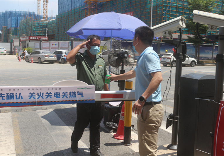 咬定青山不放松,立根原在破巖中。 千磨萬擊還堅勁,任爾東西南北風(fēng)。 ——清代鄭燮的《竹石》 炎炎酷暑,疫情再起,鴻運物業(yè)保安員們站出崗?fù)ぃ斨邷仳灤a排查,用“咬定青山不放松”的精神,堅決踐行防疫措施;用“千磨萬擊還堅勁”的定力,堅守小區(qū)“安全門”。7月26日上午,鴻運物業(yè)總經(jīng)理陳喜祥、黨支部書記陳文遠,同高層代表、黨員代表,前往鴻運物業(yè)服務(wù)的小區(qū),慰問一線保安員們。總經(jīng)理陳喜祥為保安員們送上飲料,一聲聲“辛苦了”道出對保安員工作的肯定和感謝。陳總要求各物業(yè)服務(wù)中心備齊解暑應(yīng)急藥品,定期開展“送清涼”活動,讓員工在辛勤的工作中感受到公司的關(guān)懷。鴻運物業(yè)黨支部書記陳文遠與保安員握手交談,叮囑其多喝水、注意防暑,并切身感受其工作環(huán)境,和黨員代表們一同提出改良建議。在麒麟花園,我們遇到了黨員志愿者,陳文遠書記對黨員志愿者的支持表示感謝。在人流量較大的沙頭舊村卡口,我們見到了保安員耐心指引無法打開健康碼的居民,保證卡口暢通不擁堵;在鴻德園卡口,我們見到了保安員為沒有佩戴口罩的老人送上口罩;在盛芳園卡口,我們見到了保安員耐心與外賣員溝通,為其解釋新下達的外賣員快遞員不能進入小區(qū)的規(guī)定;在麒麟花園卡口,我們見到了保安員奔跑到烈日下,細致查驗車中人員的健康碼……因部分物業(yè)服務(wù)中心需協(xié)助處理居民核酸采樣,為不影響正常工作,未能一一前往慰問,在此向全體鴻運人道一聲“辛苦了”!